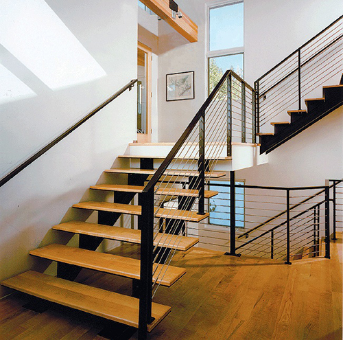 3. Cầu thang lan can thanh chạy inox và tay vịn giả gỗ