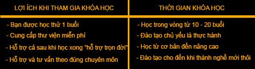 Thời gian học luôn linh động tùy thuộc vào sự sắp xếp của học viên. Khi học viên nghỉ có việc riêng thì sẽ được bảo lưu bài học, không lo mất bài. Học đến khi nào xong chương trình, làm được việc mới thôi.